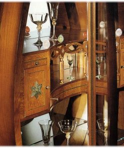 2-х дверная фигурная витрина. Полки выполнены из стекла, задняя стенка зеркальная. Возможен вариант витрины с подсветкой.
