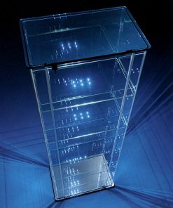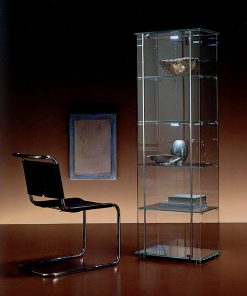 Стеклянная витрина с распашной дверцей и стеклянными полками внутри. Возможен вариант с внутренней подсветкой и другие варианты отделки.