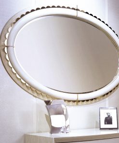 Овальное настенное зеркало. Украшено кожаными аппликациями. Возможны другие варианты отделки.