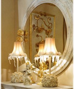 Круглое зеркало. Декоративные розочки выполнены из пенополиуретана. Возможны другие варианты отделки.