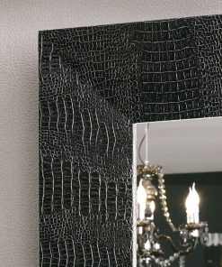 Прямоугольное зеркало, рама обита кожей. Возможны другие варианты обивки.