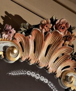 Настенное зеркало в фигурной деревянной раме. Декорировано резьбой и гравировкой